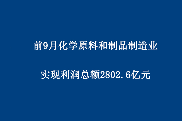 前9月化學(xué)原料和制品制造業(yè)實現(xiàn)利潤總額2802.6億元